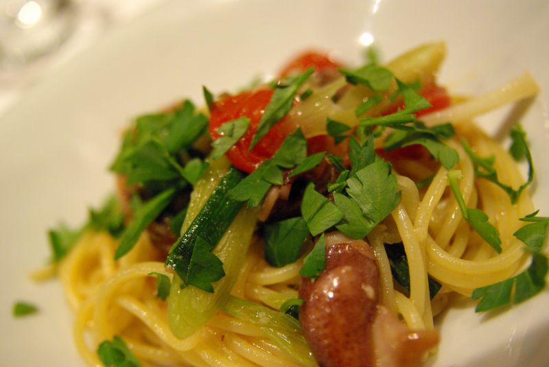 そして、2皿目は、ホタルイカと葉ニンニク、フレッシュトマトのスパゲティ