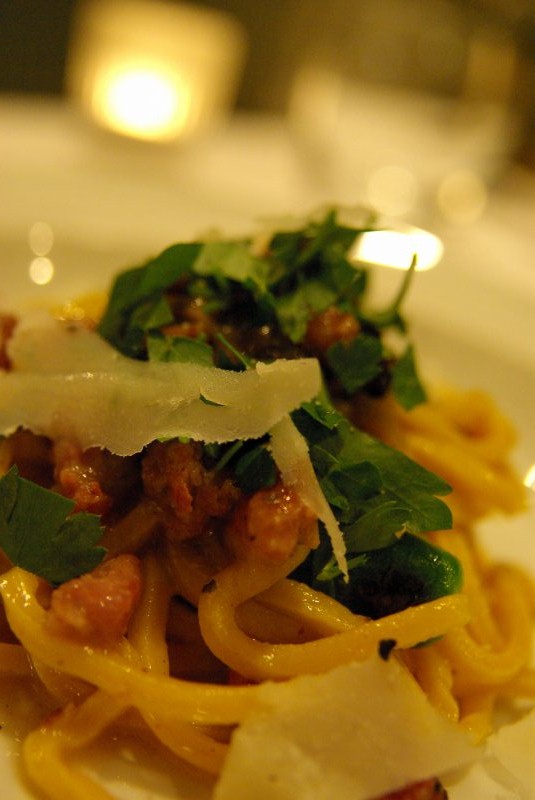 自家製サルチッチャの白ワインで煮込んだスパゲッティ