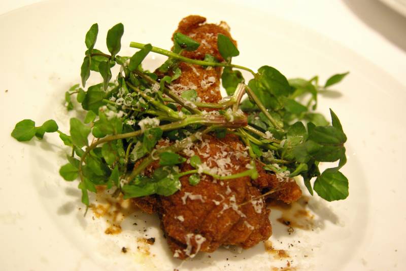 そして上のパルメジャーノとリーフ野菜がこれまたあっさりとした口当たり。