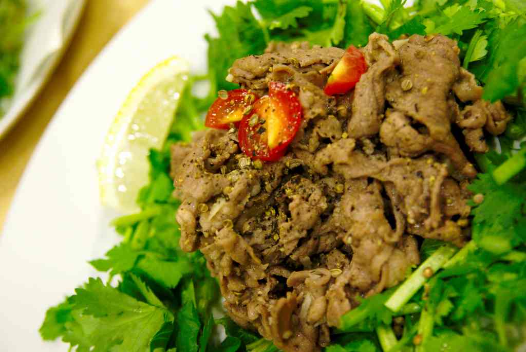 ヤンパク。スパイシーなビーフとパクチーのからみがうまい。