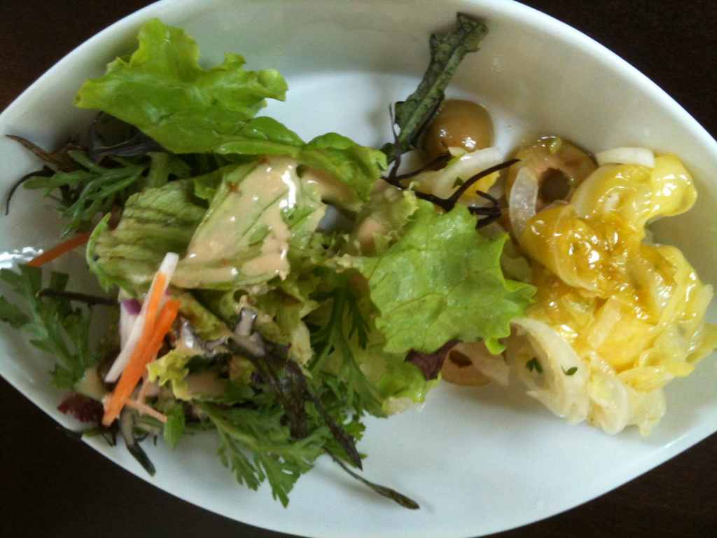 マリネものと、オリーブオイル漬けものと、あと生野菜。