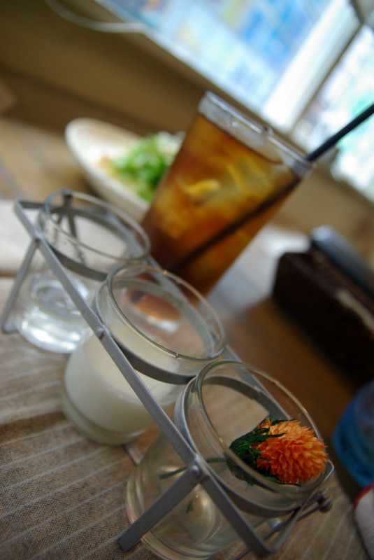 ランチセットの飲み物。ミルクとガムシロが入ってる容器がかわいい。