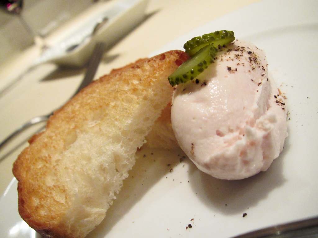 小さなオードブルはハムのムース。