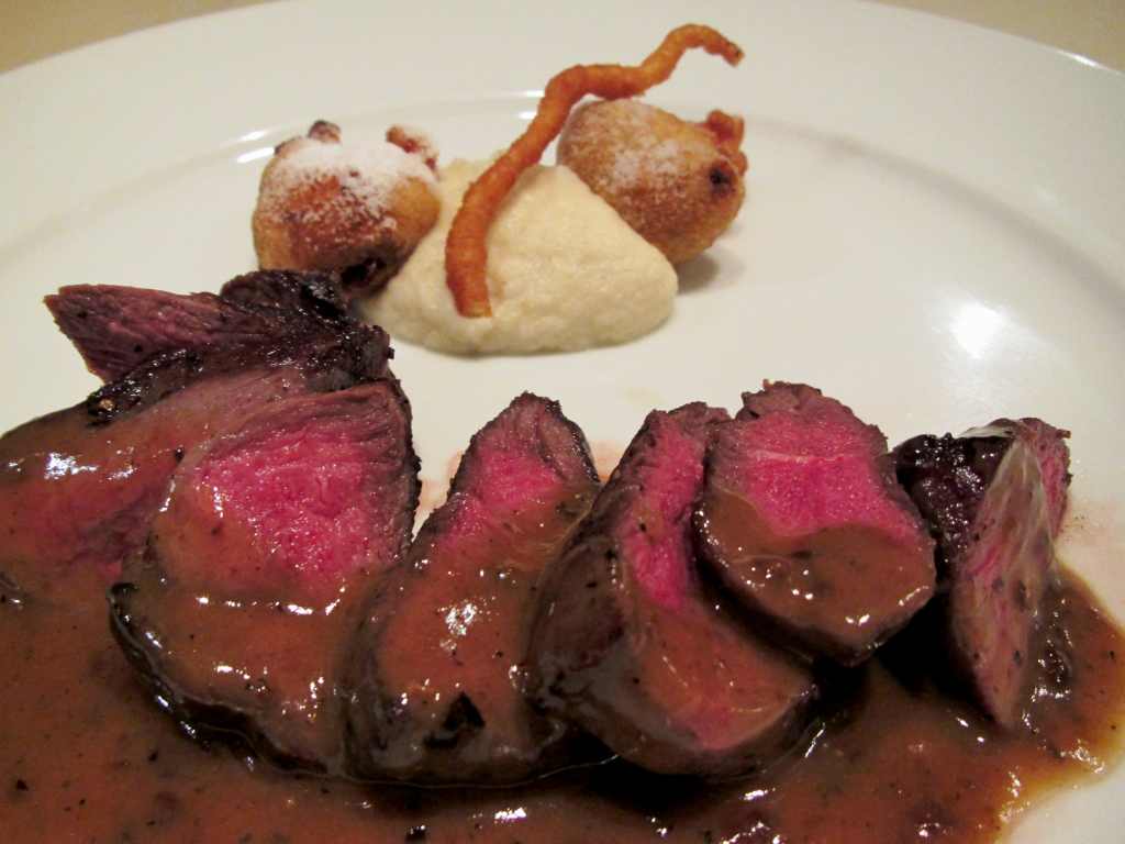 蝦夷鹿のロースト、ねずの実ソースです。