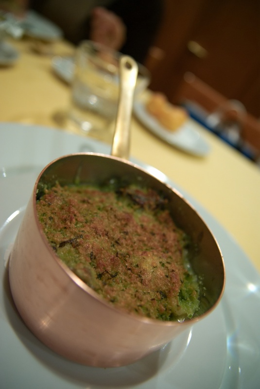 厚岸産牡蠣とコンキリエのクラシックなグラタン。