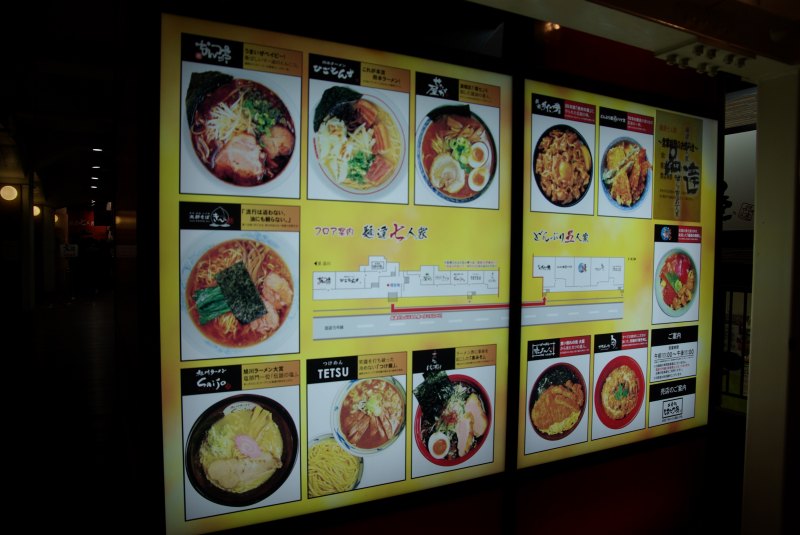 お店の名前が並んだパネル前で、どこにいこうと、しばし悩み、