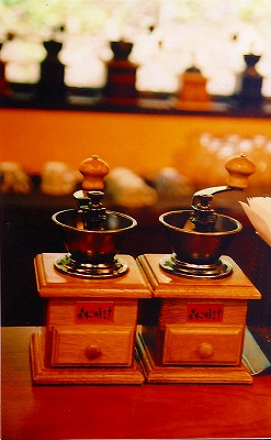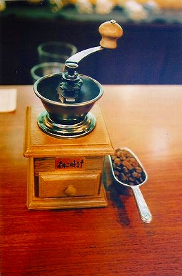 注文をすると、豆をコーヒーミルに入れて差し出してくれるので、それを好きなだけ挽きます。