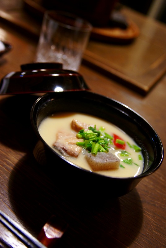 白味噌のお椀。野菜がごろごろ入ってて、あったまります。