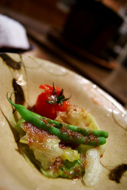 さてお料理ですが、今回私たちは、おまかせの「雪」コースをオーダーしました。