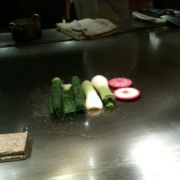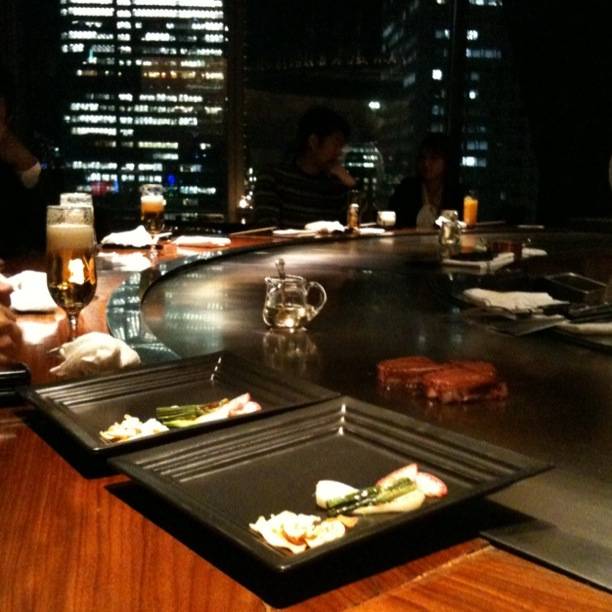 目の前の鉄板で、焼いてくれる料理はエンターテイメント性があって