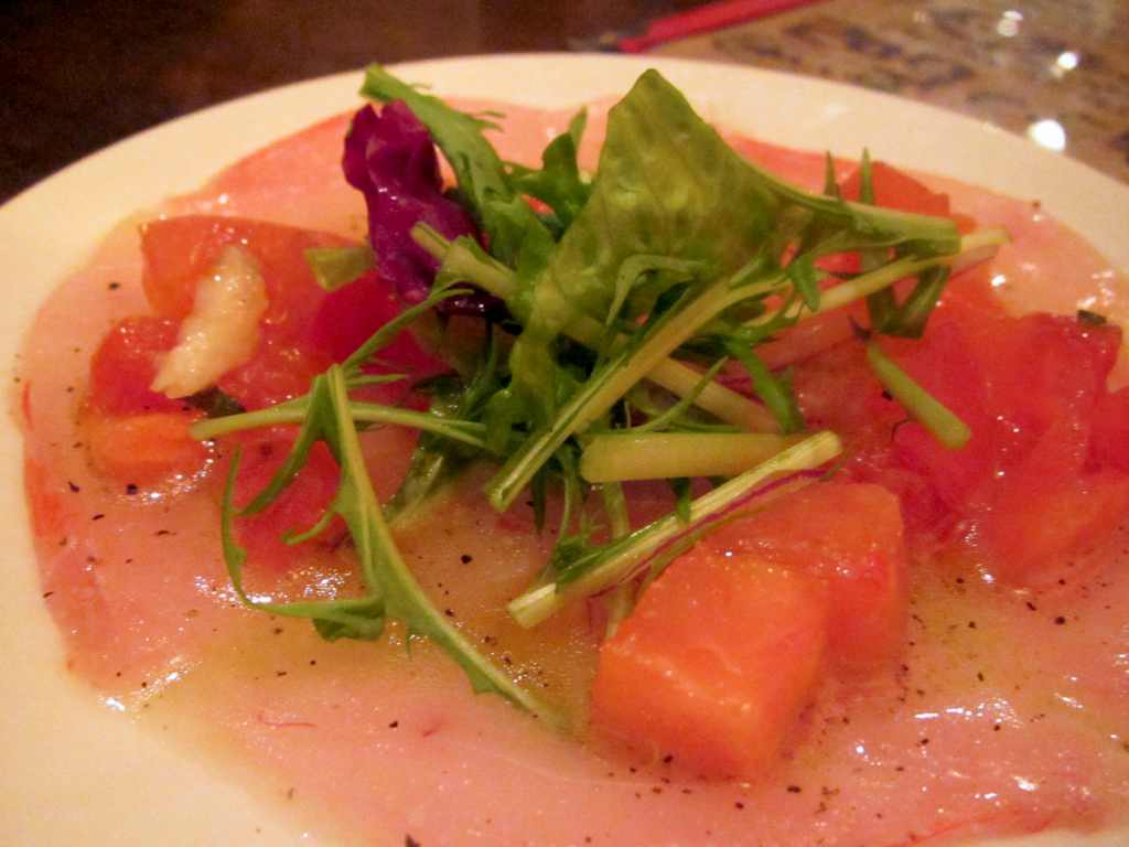 鮮魚のカルパッチョ。かなり小さなお皿でしたがお魚の鮮度はよかったです。