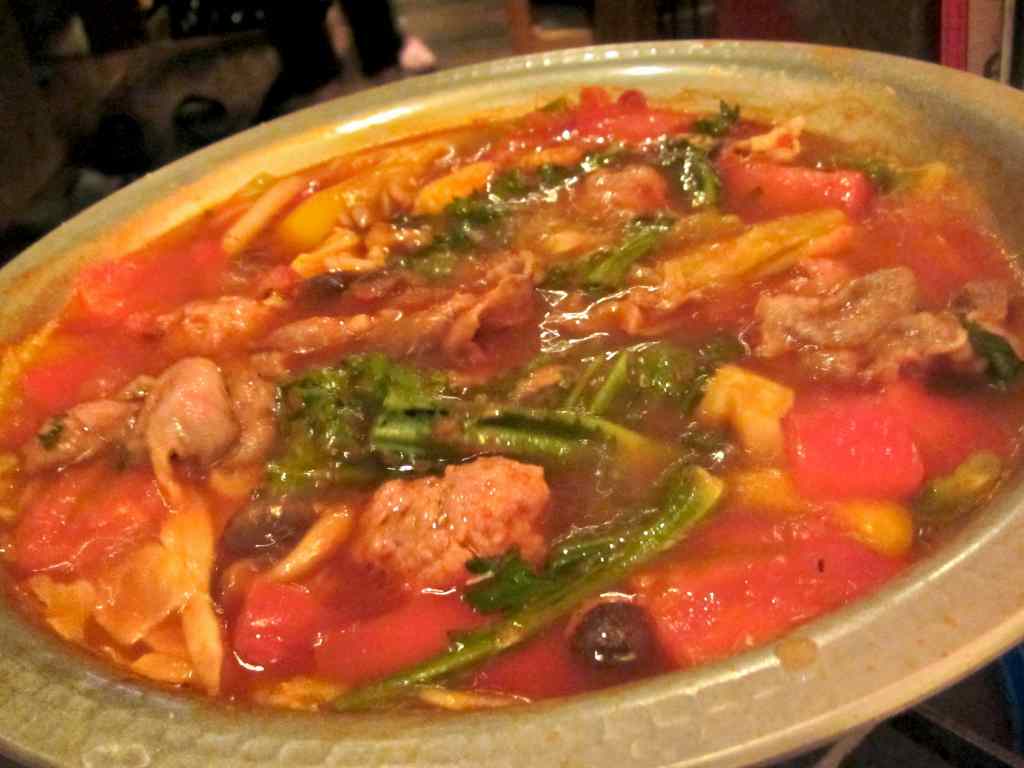 でお料理なんですが、タパスが主流なんだけど、話題のトマト鍋もあり